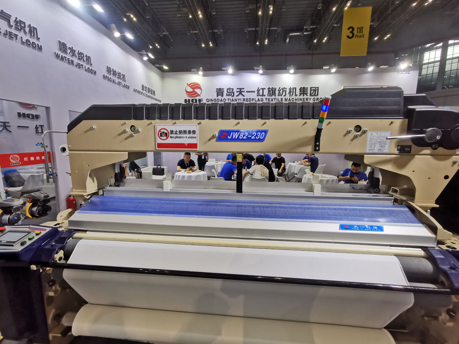 青島天一紅旗紡機(jī)集團(tuán)有限公司營銷部經(jīng)理李德勝說:“高效節(jié)能、智能實用是本次參展樣機(jī)的主題。幾天來,不少客商都對天一紅旗的噴氣織機(jī)和噴水織機(jī)表達(dá)了購買意向。”